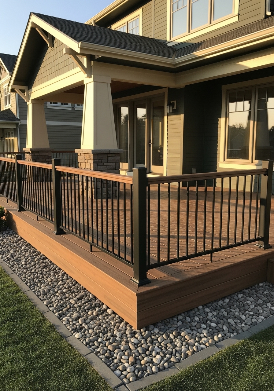 Decks easily catch fire because embers can collect on the surface, between deck boards, or underneath. Embers can also gather around items on the deck and along nearby walls. To lower the risk to your home, replace deck surfaces, stairs, and railings with fire-resistant materials, enclose the under-deck area with metal screening, and keep the deck clear of combustible items.